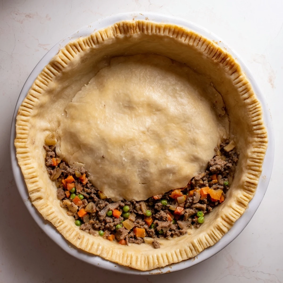 Dieser herzhafte Pie verbindet einen goldbraunen, blättrigen Teig mit einer herzhaften Mischung aus gewürztem Hackfleisch, frischem Gemüse und aromatischen Kräutern. Die Kombination aus Zwiebeln, Knoblauch, Karotten, Erbsen und Pilzen sorgt für reichhaltigen Geschmack und angenehme Texturen. Nach dem Backen erhält der Pie eine knusprige Kruste, die perfekt mit der saftigen Füllung harmoniert. Ideal als wärmende Hauptspeise zu jeder Gelegenheit.
