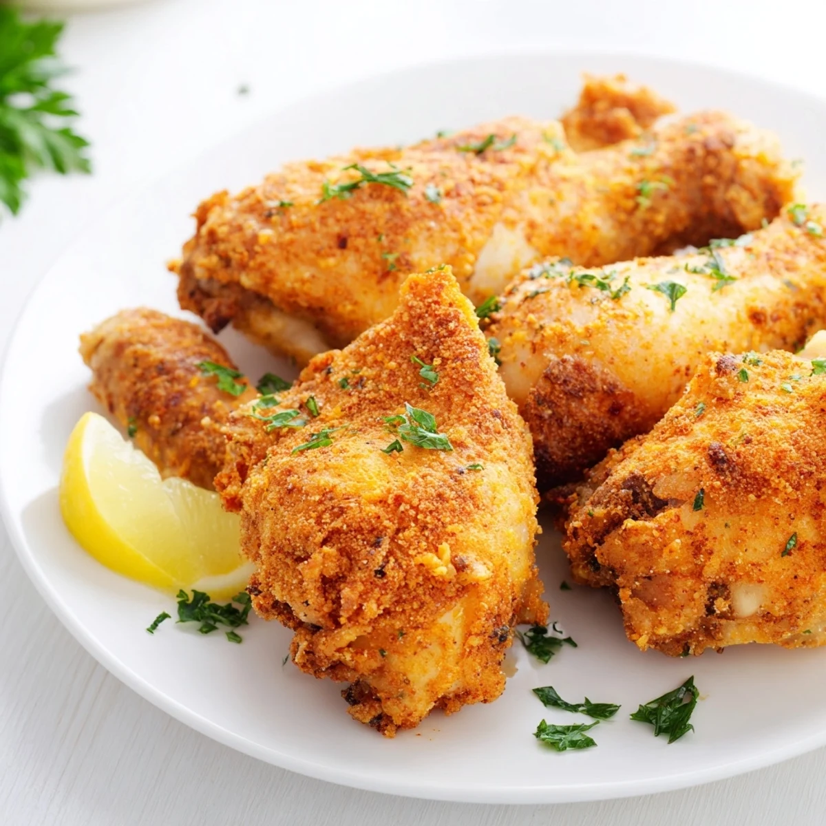Die Hähnchenteile werden bei 175°C in heißem Öl frittiert, bis sie eine gleichmäßige goldbraune Farbe erreichen. Das Ergebnis ist ein wahres Soul-Food, das ohne viel Aufwand auf den Tisch kommt und perfekt zu Kartoffelbrei, Coleslaw oder frischem Brot passt.